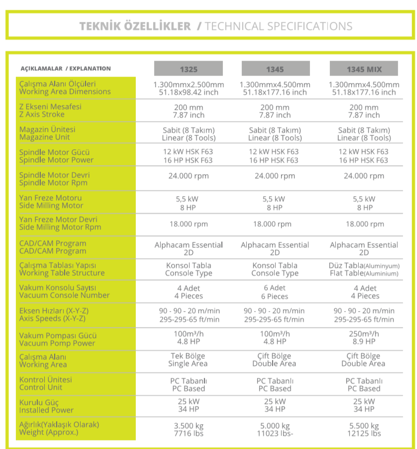 • Makine üzerindeki tüm eksenler servo motorlar yardımıyla kontrol edilmektedir. Son teknoloji ürünü servo motorlar makine eksenlerinde mükemmel ivmelenme ile kontrol sağlamaktadır.