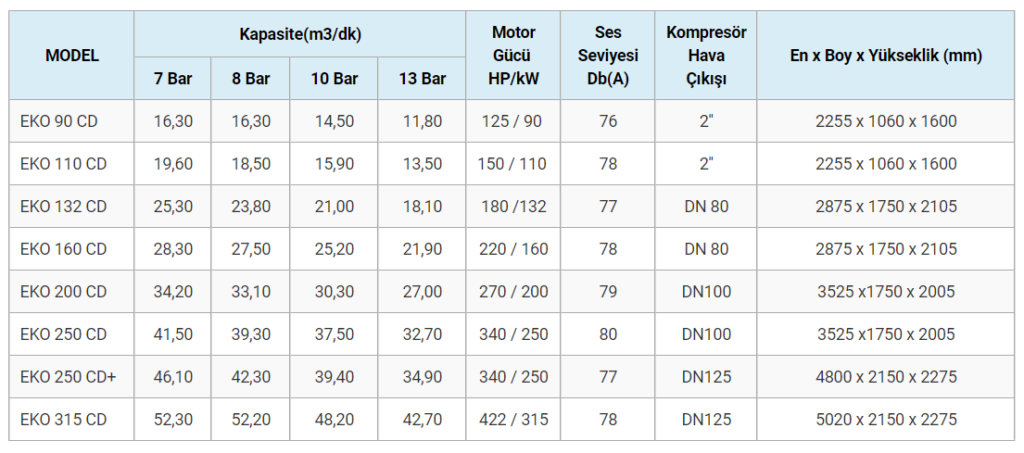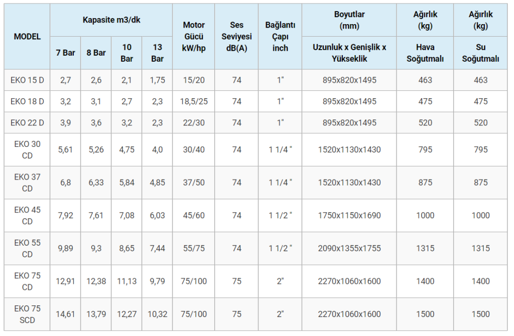 - Düşük yağ tüketimi, minimum bakım maliyeti ve uzun kompresör ömrü sağlar. Kolay kurulum, kullanım ve servis.