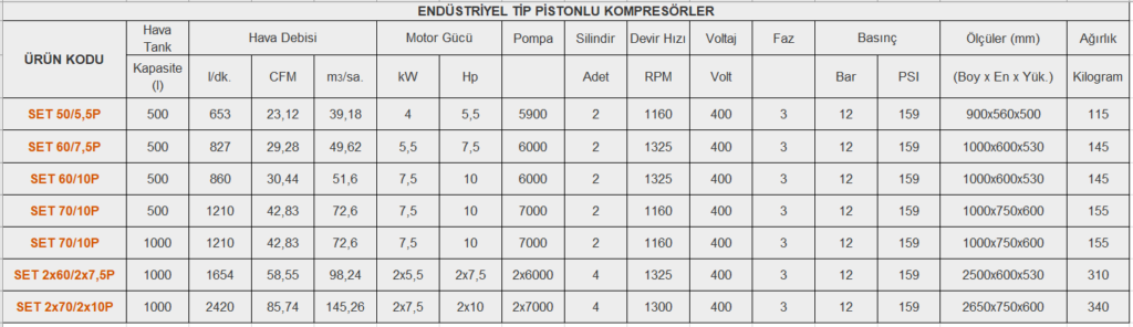 Ürün kodunda “2x” ibaresi bulunan modeller iki hava üreteci ve iki motordan oluşan sistemleri ifade eder.