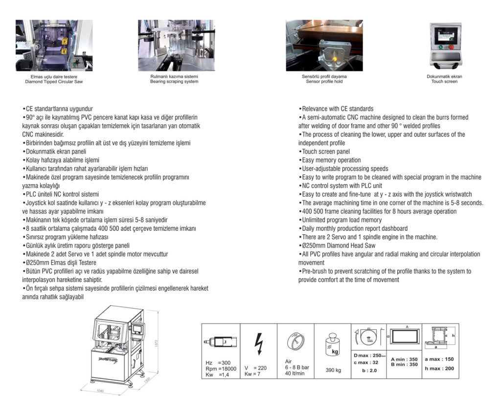 Plastmak PLC Kontrollu Yari Otomatik CNC Köşe Temizleme 2 Aksli SC-6000